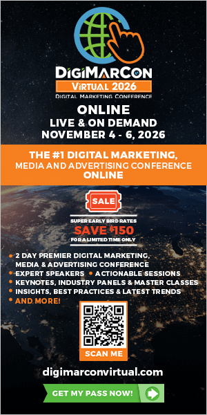 Sign up for email updates and get your the FREE DigiMarCon Virtual brochure and stay in the know about all things DigiMarCon including price changes, discounts, and the latest speakers added to the schedule.